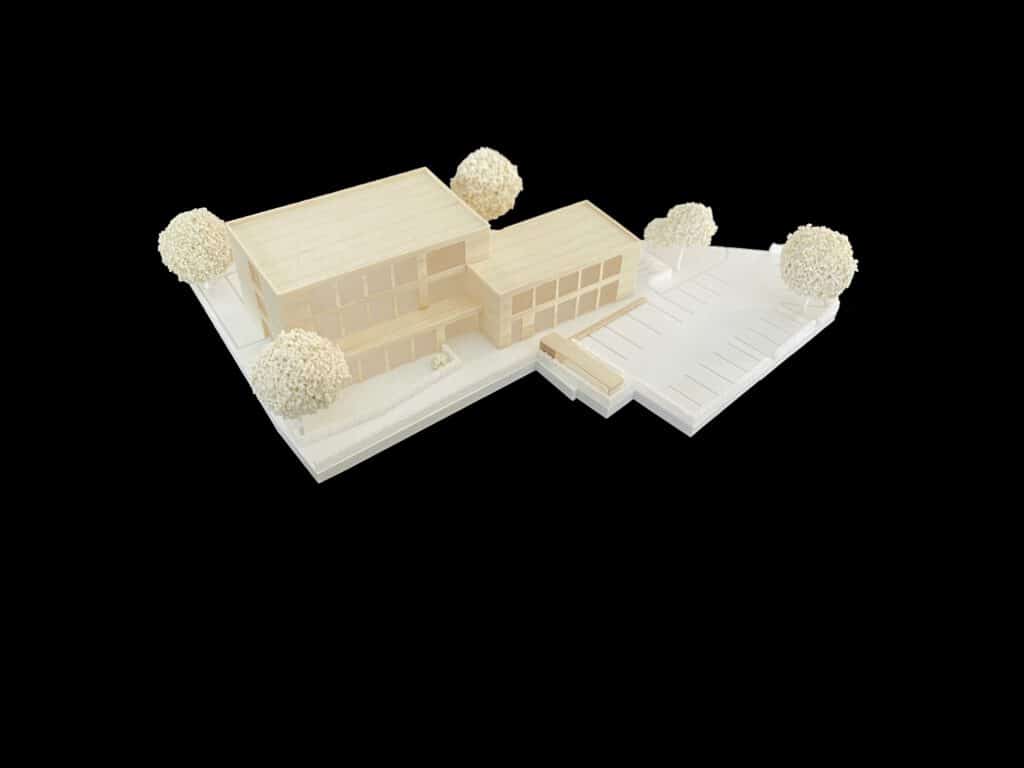 Der Neubaukörper orientiert sich an der L-förmigen Gestalt der Bestandsbebauung. Westlich umfasst das Gebäude den Schulhof, dem durch die Öffnung zur Dorfstraße der Dorfplatzcharakter erhalten bleibt. Nördlich betont der zweigeschossige Gebäudeteil den Haupteingang. Der südliche eingeschossige Baukörper wird in Richtung Schulhof von einem offenen Gang mit außenliegender Stützenreihe begleitet. Die überdachten Bereiche dienen der natürlichen […]